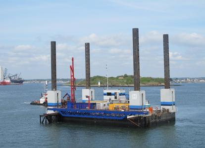 In the summer of 2019, after completion of a nearby harbour construction project at the idyllic German island of Helgoland, JB-104 was immediately redeployed on a soil investigation campaign in the open sea area between Helgoland and mainland Germany. The moonpool in JB-104's deck proved to be a highly useful feature. Altogether it was an exciting project for us, because usually the modular jack-up barges are deployed inside port breakwaters. Now, the JB-104 was out at sea, fully exposed. Thankfully the north European summer was good to us and our clients, and the projects was finished according schedule before the end of the summer.
