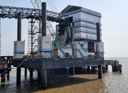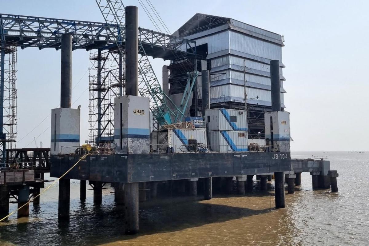 During the annual "monsoon season", India's Westcoast is frequently hit by typhoons. During one of the storms of the 2021 monsoon season, UltraTech's Kovaya cement export facility was badly damaged. In the first half of 2022, our JB-104 was deployed there to execute the necessary repair works. Project execution went smooth and by June 2022 the cement export terminal was up and runnning again.