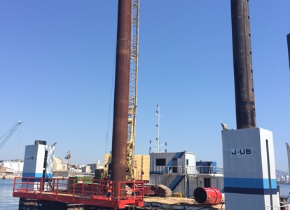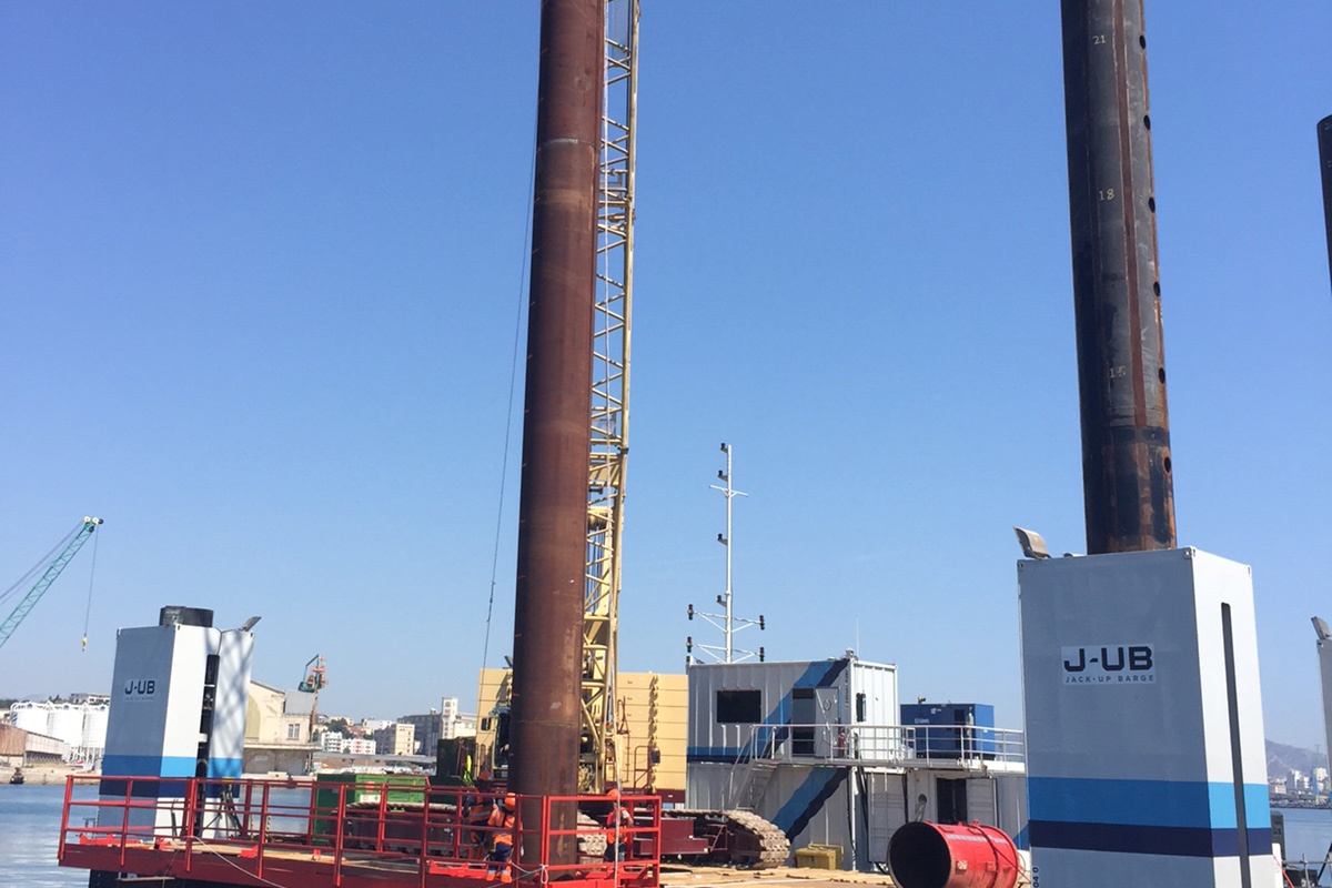 In the late summer of 2017, JB-104 was deployed on a project in the port of Marseille, France. The project was to construct a new ferry cruise terminal. Scope of work for our JB-104 was piling, dredging, and heavy lifting.