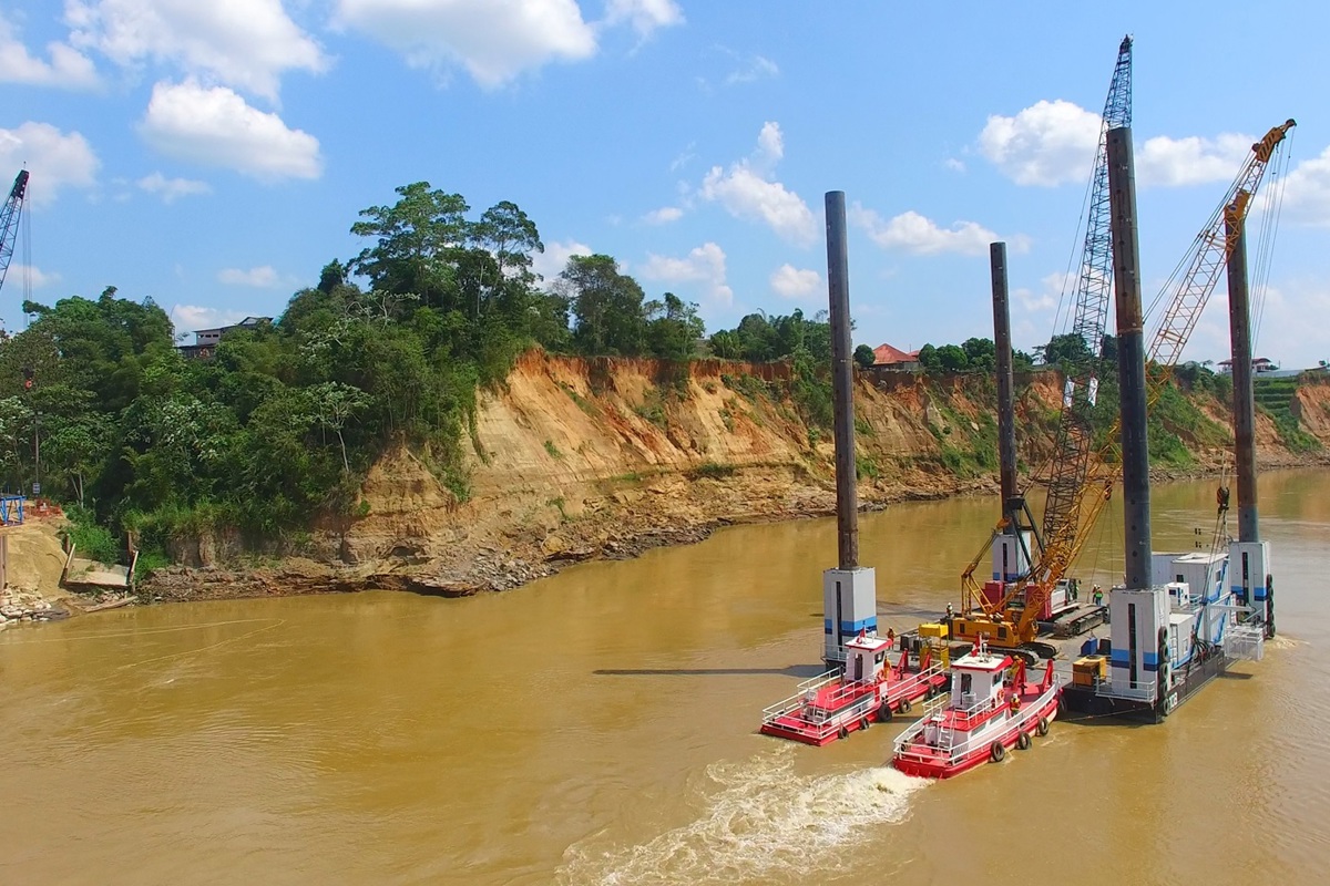 In the period 2015 - 2016, our modular jack-up barge JB-108 was deployed in the Amazon rainforest of Southern Peru, in the town of Puerto Maldonado. Our client used JB-108 for the installation of structures, to decrease the strong river currents in one curve of the river, in order to mitigate a riverbank erosion process which was jeopardizing the neighbouring village. After successful completion of this project, indeed the eriosion process stopped. Providing a jack-up barge on a remote inland project location in the deep interior of Peru is a good example of how we are well positioned to serve clients in the most remote locations, thanks to the modular transportable character of our equipment.